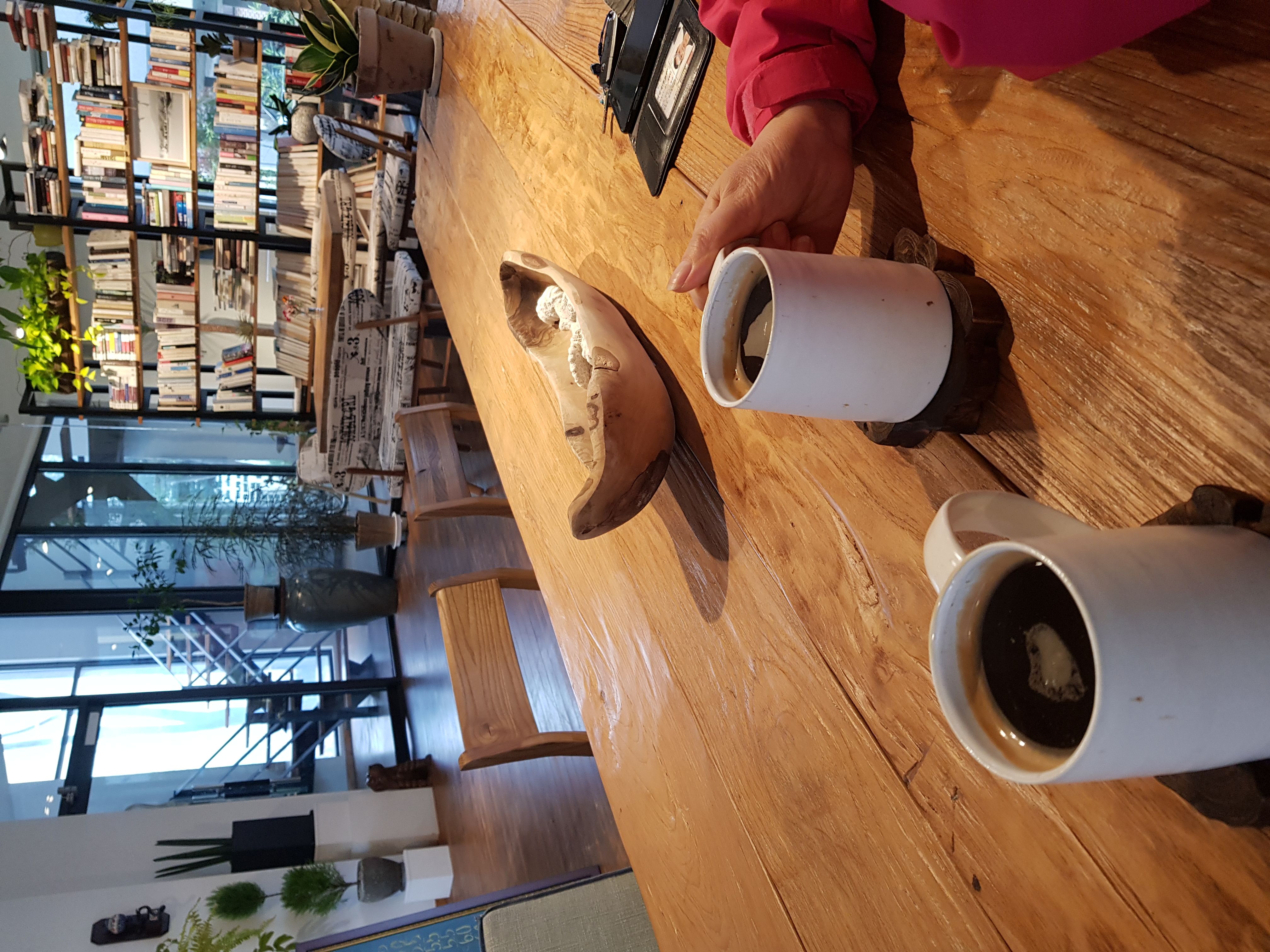 카페 디자인은 깔쌈함+원목+도자기 조합입니당.