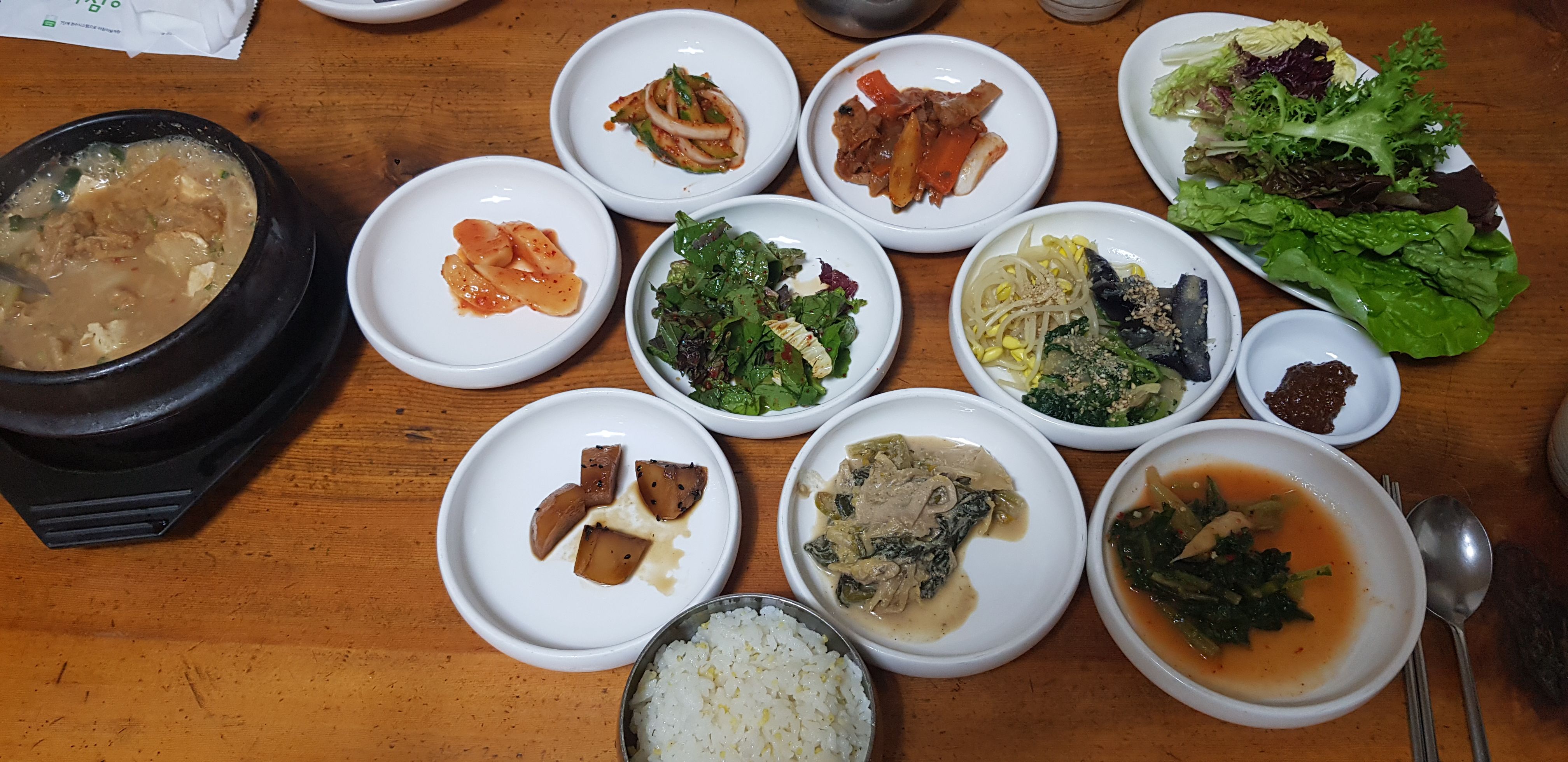 이번에는 청국장 정식을 시켰는데 청국장 냄새가 너무 강하지 않아서 부담 없이 잘 먹을 수 있습니다.