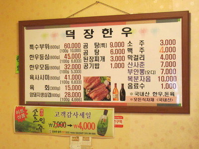 저 메뉴보다 특수부위만 6천원 올랐습니다.