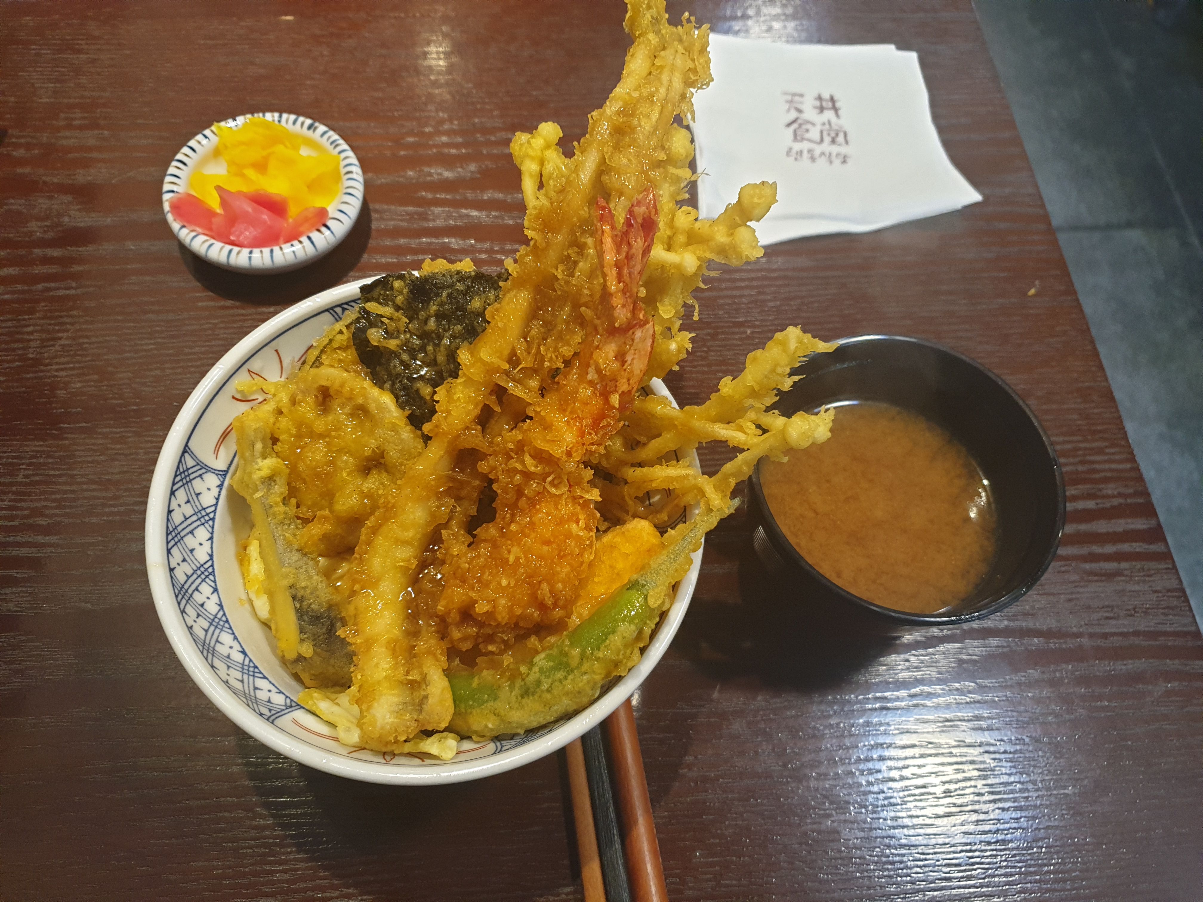 서울에 있는 텐동집 세곳중에 2등인 집입니다. 1등은 텐동 요츠야, 3등은 야마토 텐동입니다. 사진은 아나고텐동,13000원입니다. 가지, 김, 연근, 새우, 아나고, 계란말이, 팽이버섯, 고추 외에 더 있었나 모르겠네요. 온센타마고 1천원 추가인데 기름에 튀겨만든 온센타마고가 별미입니다. 재료가 신선하고 튀김정도도 좋고, 소스도 과히 달거나 짜지 않아 좋습니다. 오히려 심심하다면 심심한 편. 다만 가격이 착하다는 생각은 안들고.. 국내에 들어온 텐동들이 가격대가 좀 세지않나 싶습니다. 기본적으로 장국만 나오고 찬은 치자단무지와 생강절임이에요. 멀리서 올 것 까진 아니지만 근처에서 제 값주고 제대로 된 텐동이 끌릴때 가보시면 좋을 것 같습니다. 2
