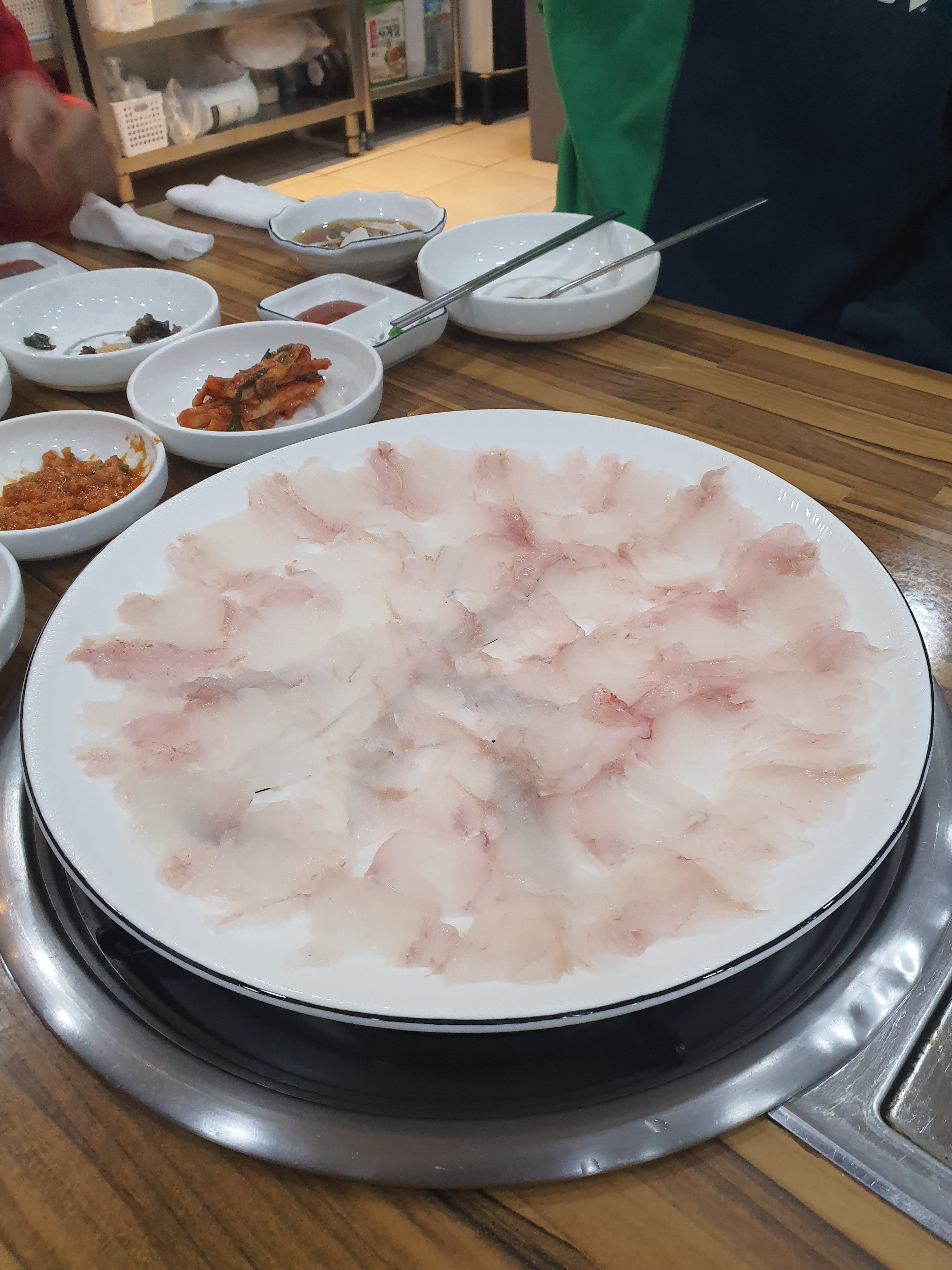 제가 먹어봐서 추천할 수 있는건 아구 스페셜이랑 장갱이 회 입니다 아구 회 아구 샤브샤브 아구찜이 나오는데 4~5인분 정도의 양이고 ☆☆1인당!!!☆☆ 9만원입니다 장갱이 회는 10만원이고 아구회정도로 한접시 나옵니다(사진은 아구회, 아구 샤브샤브)