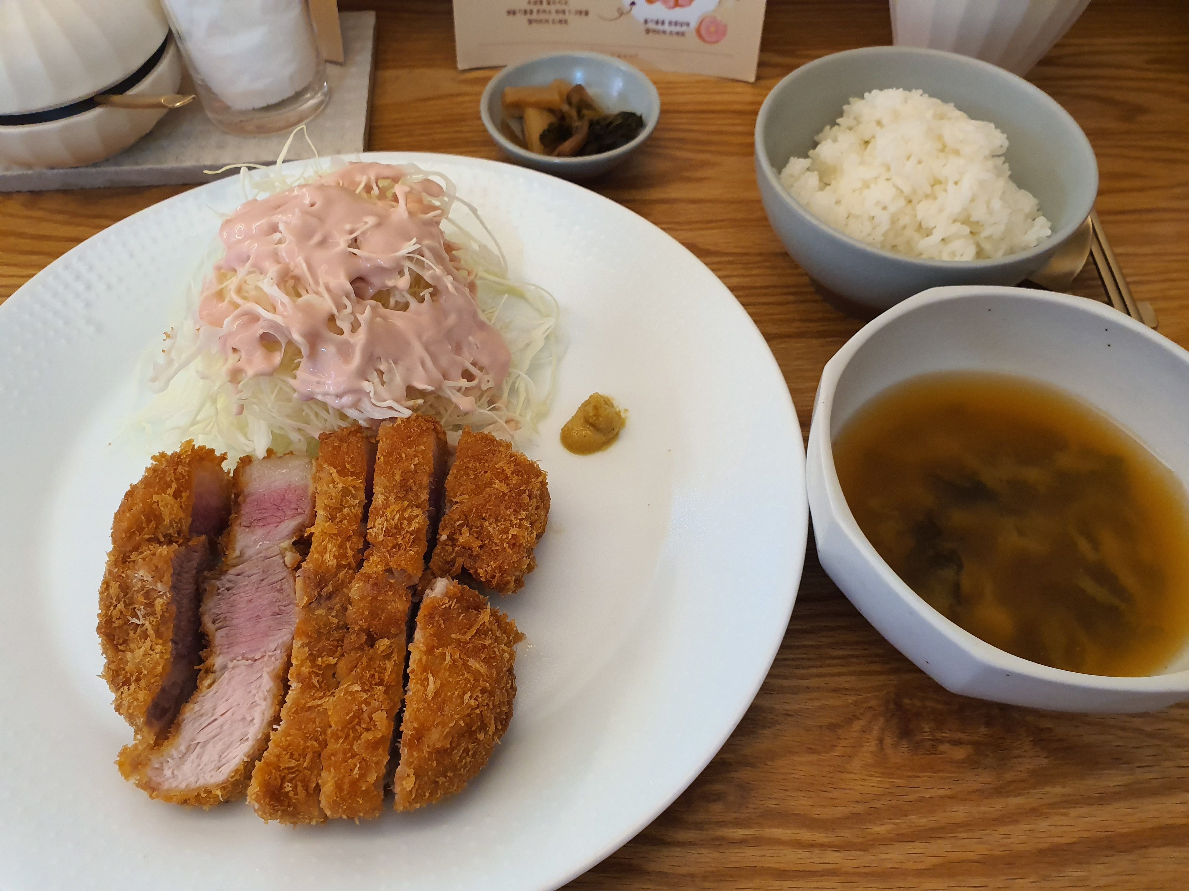 다른 반찬, 국이 맛있어서 먹고 나면 잘 먹은 한 끼 느낌이 듭니다. 마지막에 나오는 요거트가 자칫 느끼할 수 있는 돈까스의 기름짐을 확실하게 씻어줍니다.